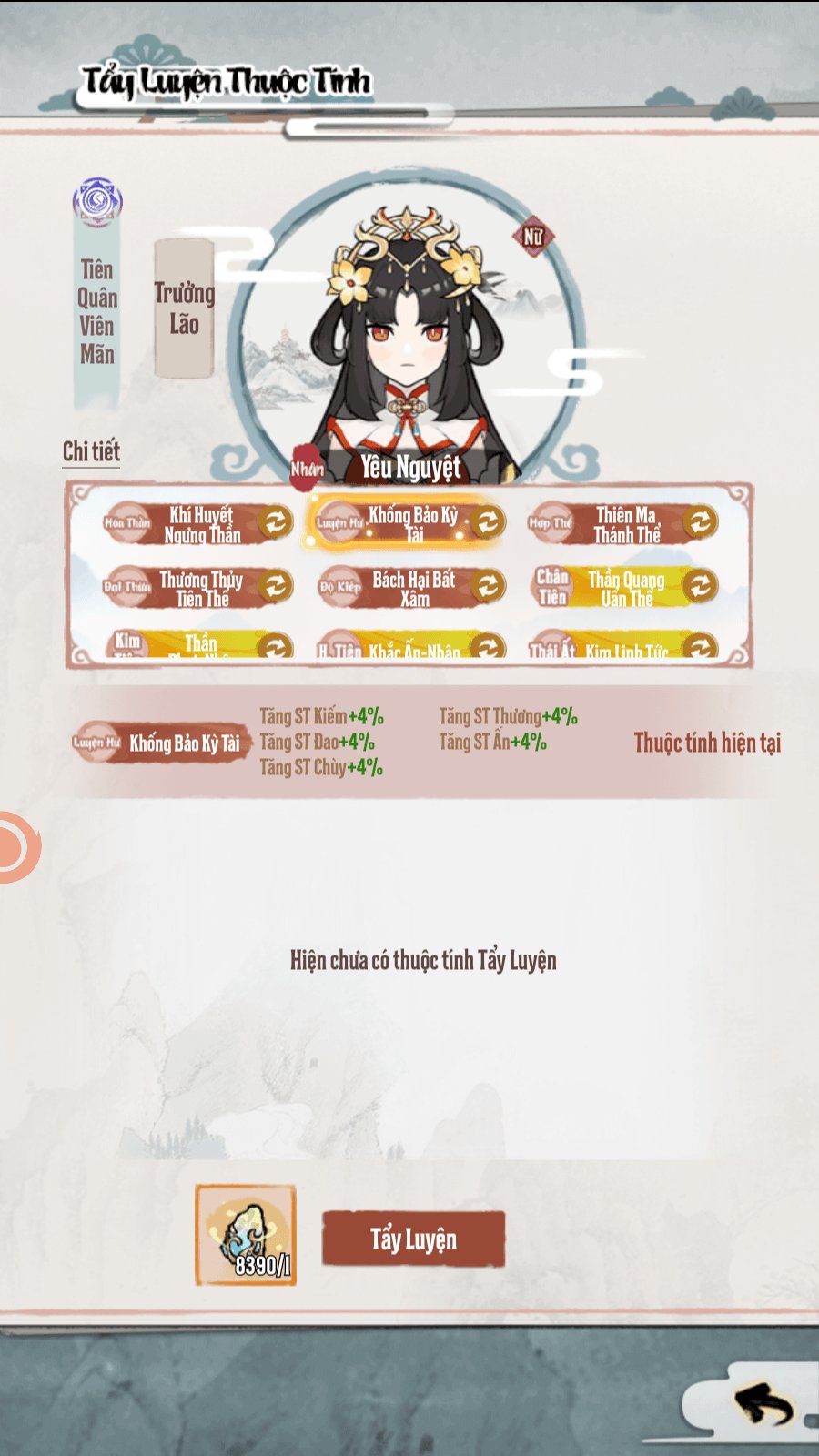 - Khí Cảm: Tăng tấn công, nhưng mức tăng khá thấp. Ở cảnh giới Chân Tiên, 1 điểm khí cảm chỉ tăng khoảng vài trăm công.