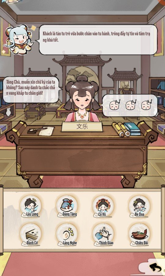 - Nếu khách có thân phận đặc biệt (như kiếm khách, học giả, thương nhân), hãy chọn phương án phù hợp với tính cách của họ.